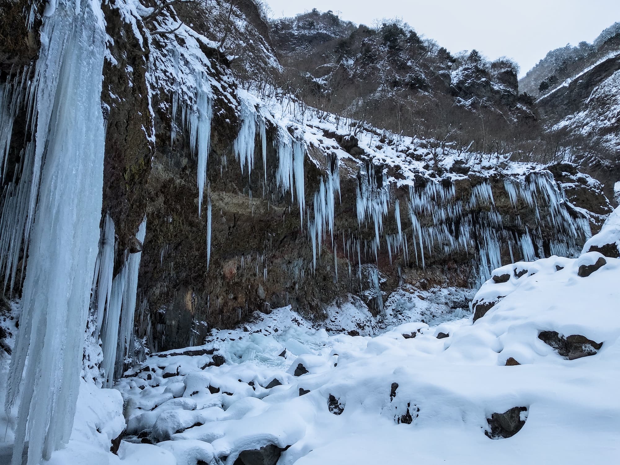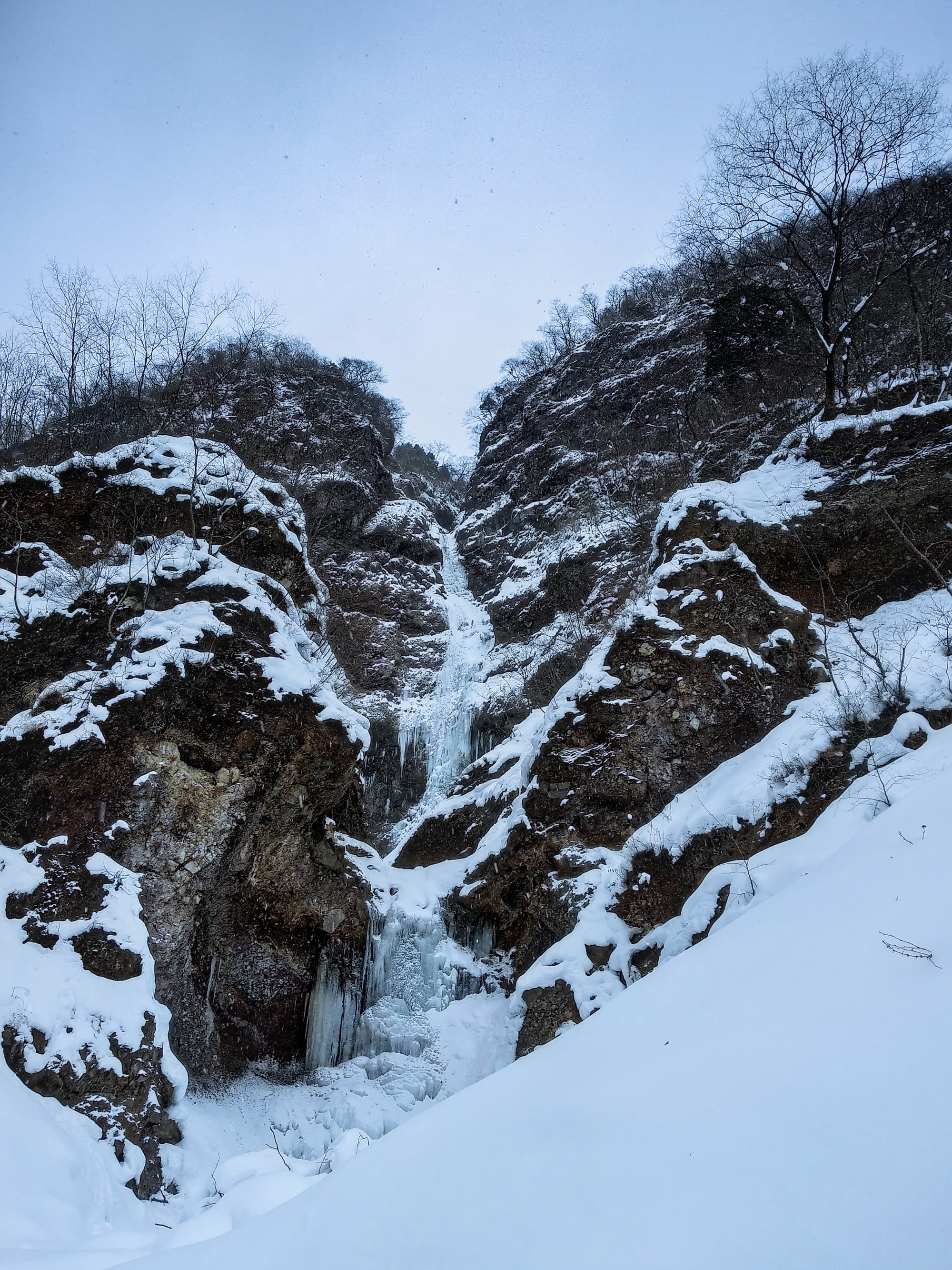 - Access: From the trailhead parking Unryukeikokutozanguchi Parking Lot - 雲竜渓谷登山口駐車場, walk for about 2h until you reach the Unryu Keikoky Falls. Note that if the river is not frozen, the falls are very difficult to access as you have to walk above the river bed for a few hundred meters at the end (but in that case they probably aren't formed anyways).